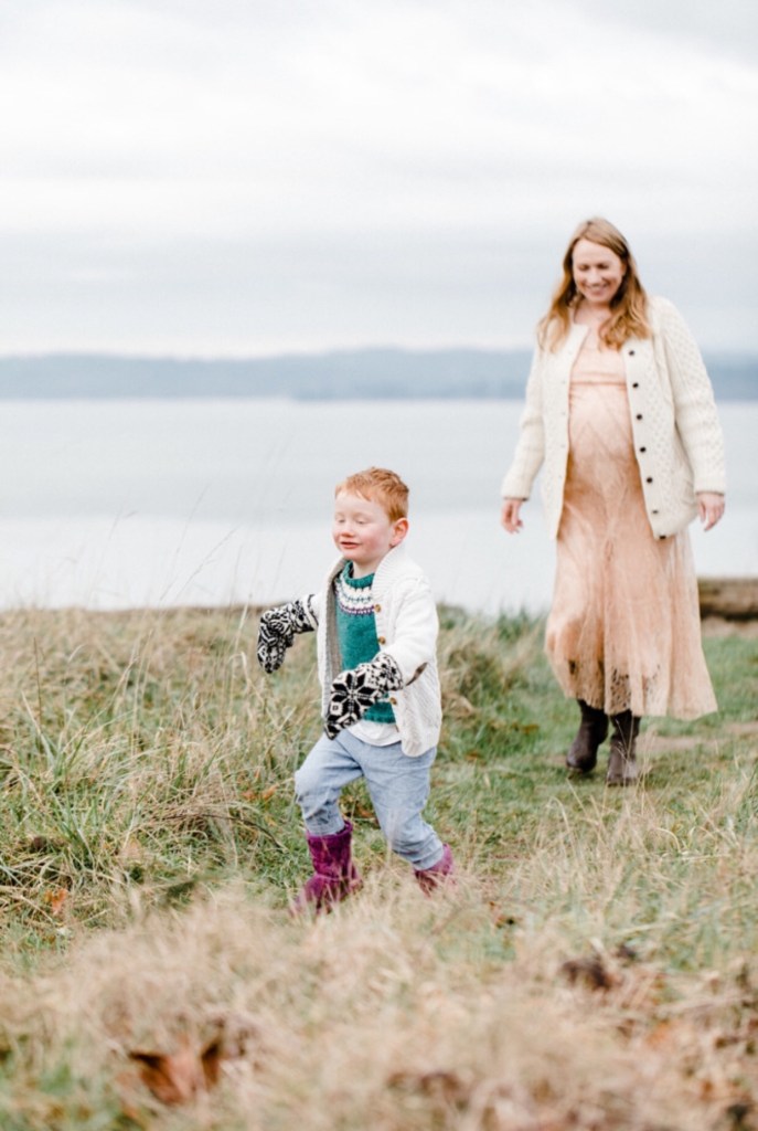 To mark the occasion of the due date ( by serendipity, yet a lovely act of hygge) We had a lovely adventure with Chamonix Penelopy Browne of The Happy Film Company at Discovery Park yesterday at 40 weeks yesterday morning. It was a beautiful morning, some sun flirted with us from 7:30-8am on our drive over, warming the air above the bluff so one arrived, although the sun tucked under a dark bank of grey clouds, we were not freezing and were able to run and play with some abandon. Lake had me running and romping with him like I hadn’t done since late summer!