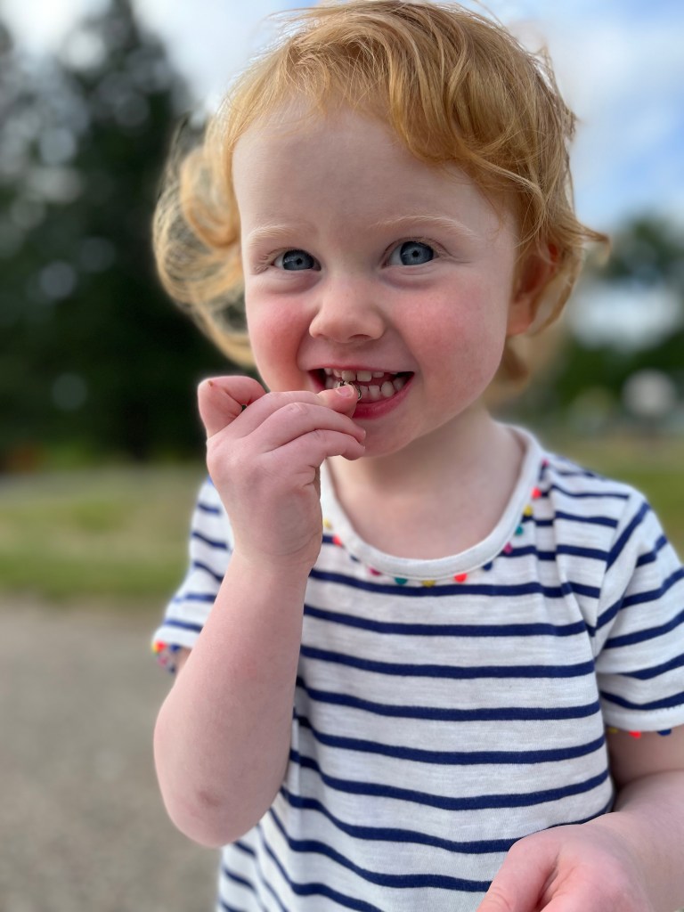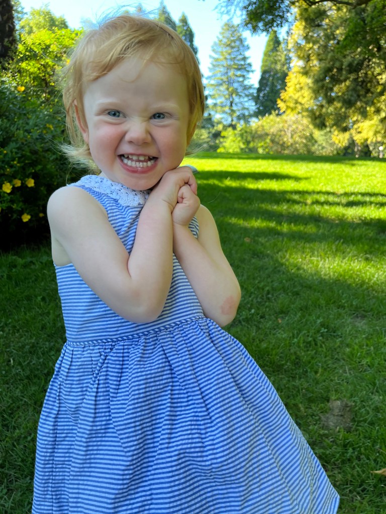 “I wuv you, Mama,” she said again. Then stood back to bask in the glory of what she knew would be a well received statement. She was not wrong. I was ecstatic. Soooo in love. Not even having the Duchess of Cambridge wear my navy Alessandra Rich polka dot dress to Wimbledon on Sunday felt better (and that was pretty exciting). Not even in the same league.