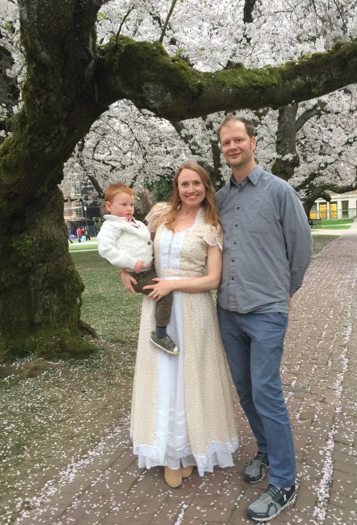 This evening we played again under the enchanted cherry blossoms while folks with all sorts of accents came to pet and play with Langley. “Auntie” Lindsay Arnold took the gorgeous family photo. The scene was like out of a fairytale. Indeed, afterwards I sent Lake to sleep with a story.