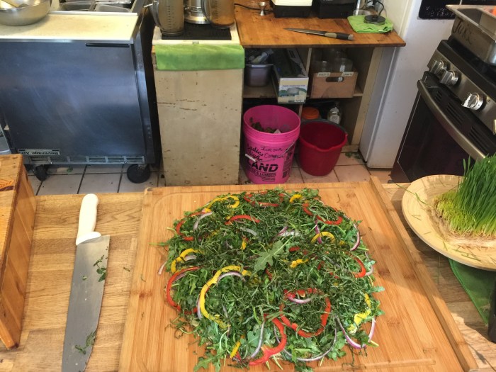 Our quick and easy home-cooked hack of the vegan GF pizza, not nearly as fresh and raw, is Trader Joe’s cauliflower/polenta pizza crust (frozen) topped with a can of TJ’s Grecian Style Eggplant and some broccolini florets as the topping. Both ways are enjoyable. All the family is enrolled in the adventure of gentle planet living and fresh garden eating. Yum!