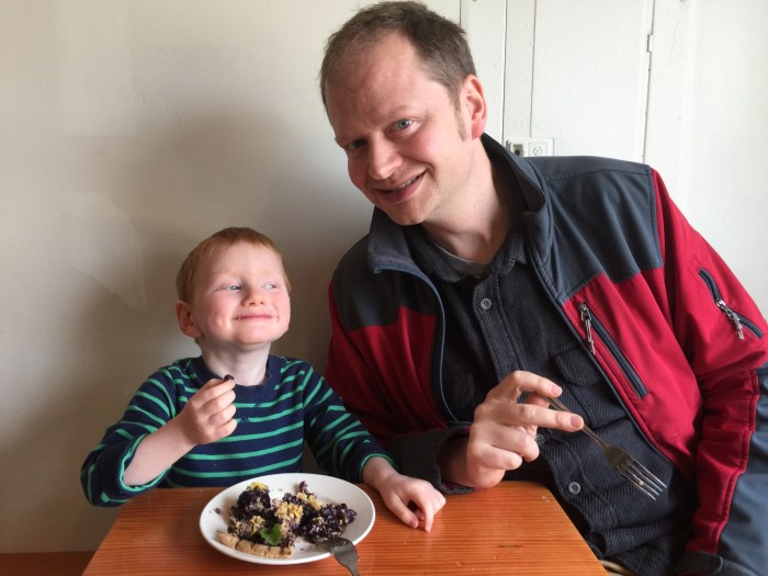 Michael and I have a tradition we’re inducting Lake into. When we travel we like to seek out the vegan and/or gluten-free restaurant(s) and patronize them. Lake likes this tradition since it usually merits a dessert he can eat.