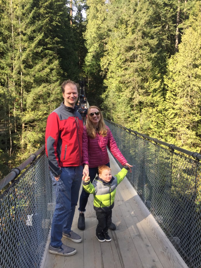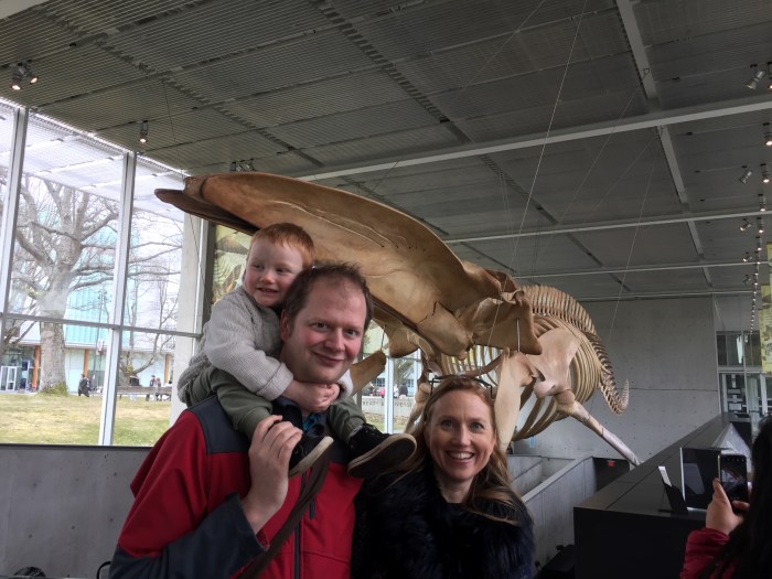 After just a little bit of sleep not a big bit of sleep just a little bit of sleep (Lake gesturing with his fingers ) we set out on the bathtub ferry boat for Granville Island Public Market, and then bussed up to the University of British Columbia where we saw the largest Blue Whale skeleton ever (well, at least in Canada), and plotted Lake’s future academic career at UBC. Then we visited one of my own favorite college haunts, The Naam, the 24 hour vegetarian health food restaurant open since the 1960’s that has such soul. Mid-chopstick, Lake took his nap right there on the banquet while we enjoyed our tea and dessert and chatted in the sunny window seats reminiscing about college days and swapping stories about our first jobs. A perfect day… so nice to explore British Columbia and Vancouver, Canada with Luisa, Lake, and Michael!