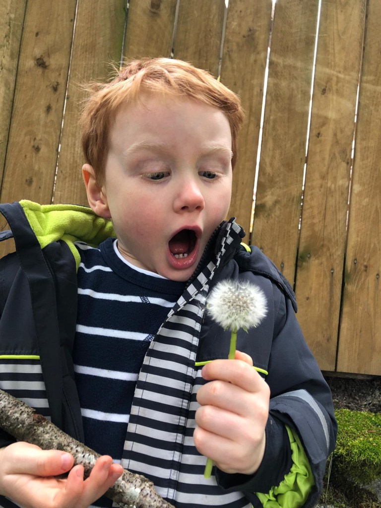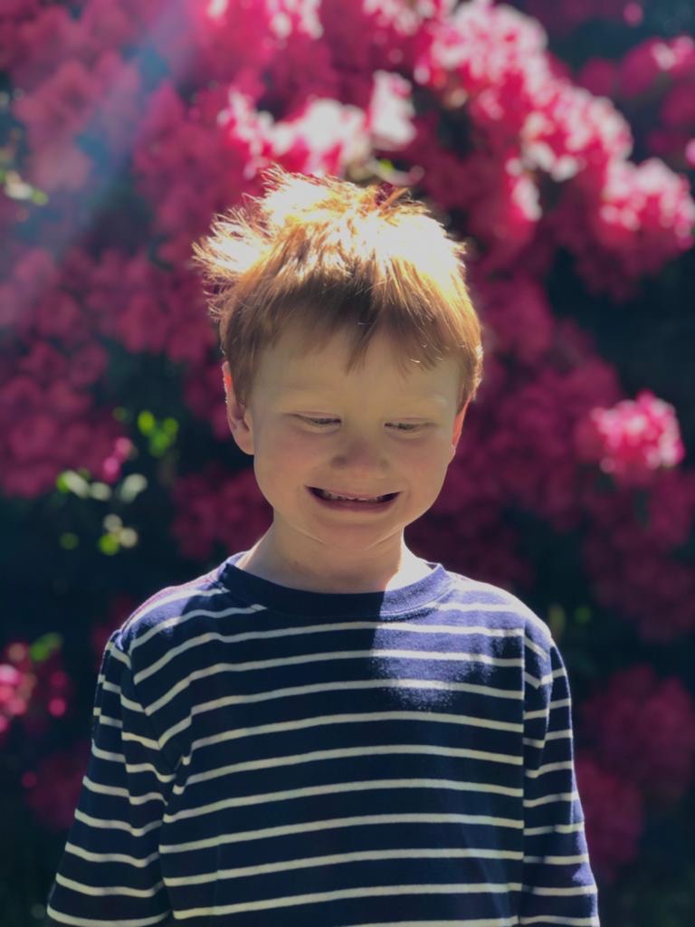 It’s not quite the braided spikes hairstyle being popularized in Kenya, the one resembling the COVID-19 virus, but the brilliant rhododendrons backlighting does create a beautiful corona of glowing long hair. It’s the overdue for a haircut pandemic look. Ha, I have no excuse that the barber shops are all closed, because we cut his hair at home normally. I can tell he’s overdue for a visit with Nana and Baba though. He always comes home from NanaBaba’s sporting a fresh short hair cut, looking smart and about a mile older.