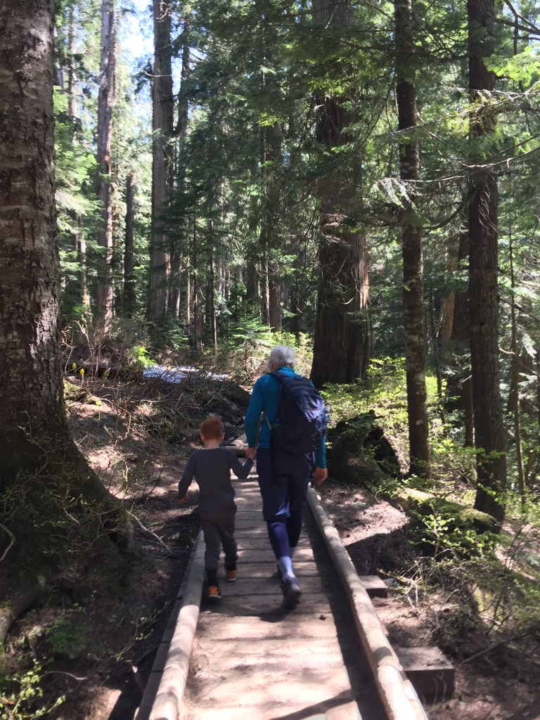 Nana took us on this hike and kept a close eye on Lake as the edge of the trail is rather near the steep ledge and the rushing water. Nana had been Lakes au pair for the week while Madeline relaxed in Hawaii. Lake found this hilarious. “Nana is my au pair!”