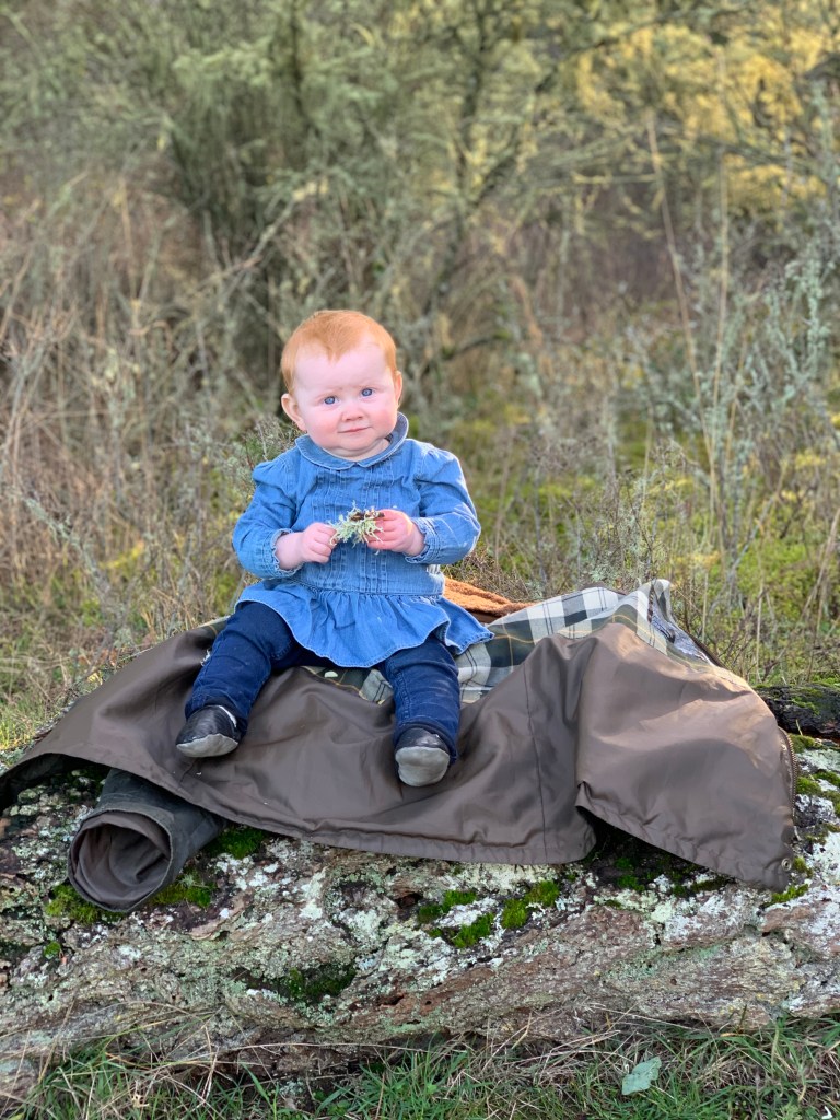 After feeding Lady Kitty and tucking her in, thinking she would be utterly content, Lake hollered alarm bells to me. “Tolle! Tolle, Lady Kitty is out of bed!” Lady Kitty had indeed crawled right out of her bed, and as I returned to the scene, she dodged me. She zoomed underneath my feet and went straight for the stairs. She navigated her crawl purposefully over the baby gate without missing a beat. She paused to look over the edge. She had sometimes sat at the top of the stairs as if gazing down into the canyon from the rim, but never before had she attempted downclimbing. Today was different. After a short caluculating apprasial, she scooted herself around to where her backside was in the air, and began feeling her way down the stairs, feet exploring the way like antennae.