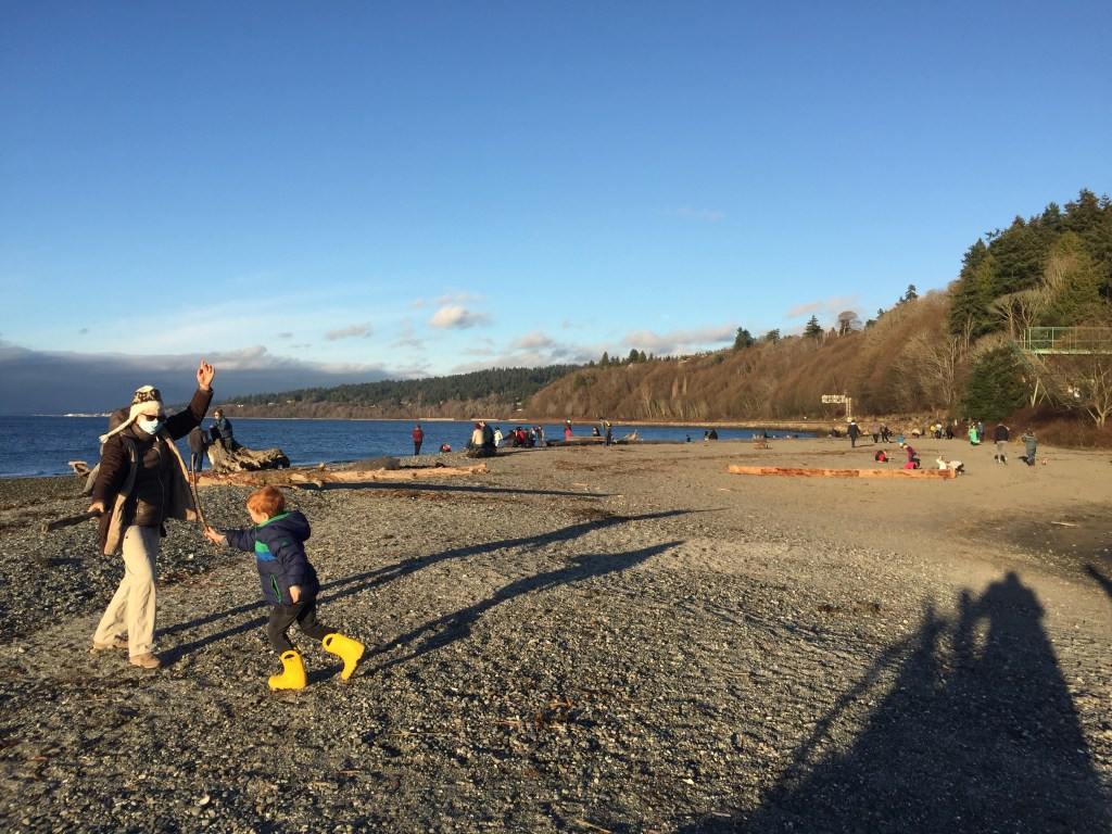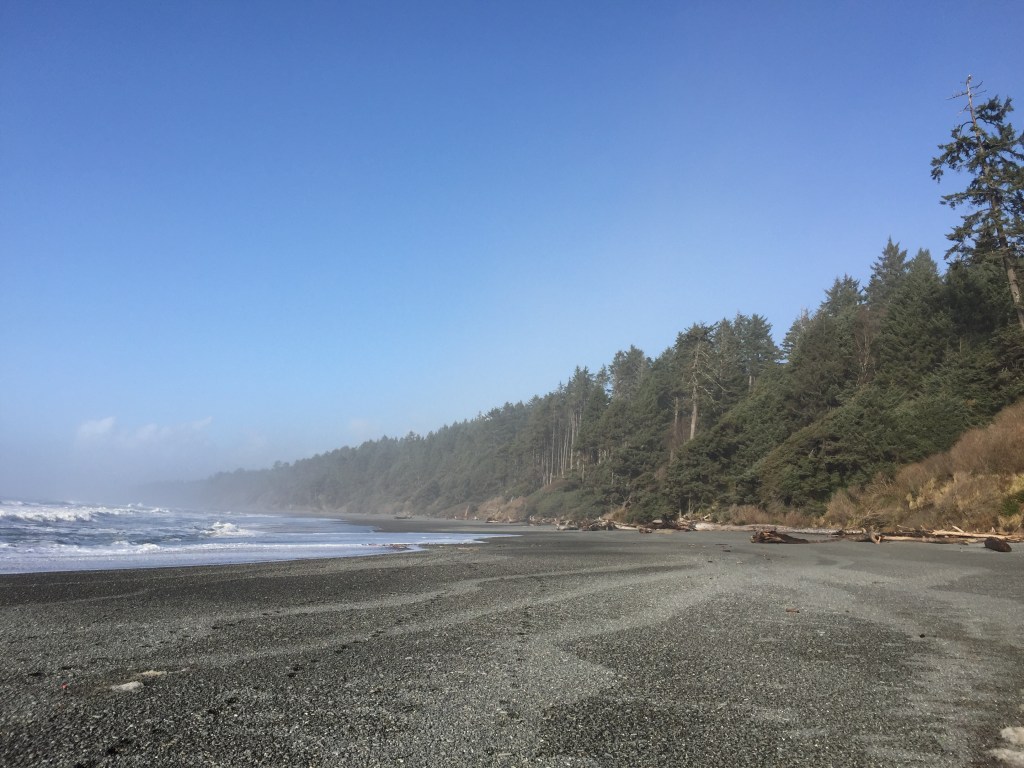 The beach is empty, save us. The sky is empty, save a family of bald eagles, two with white heads and tails, two juveniles sporting mottled brown overall. The beach is seemingly devoid of life. What are the eagles looking for as they fly over and over along the coastline? The views are vast and repetative.