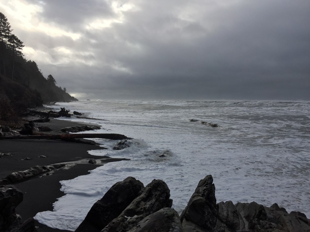 The wild Washington coast is one of my favorite places to be in winter. It’s a yearly pilgrimage of mine, a birthday tradition to revisit the Pacific Ocean. Time here is suspended, and the passing of time is only relevant in relation to the tides or geological time-frames. It could as easily be any century, any millennium. I’ve often thought of time as spiral, and here is an affirmation of that hypothesis. As I walk along the beach here, as I have walked along the beach here for many winters prior, I am the same body, here is the same beach, trees, sky and waves. The coast here is my touchstone. Many changes over the past year, yet nothing has changed. There’s something humbling and comforting, rejuvenating and inspiring about celebrating my birthday annually in the presence of ancient trees, timeless winds and ceaseless waves.