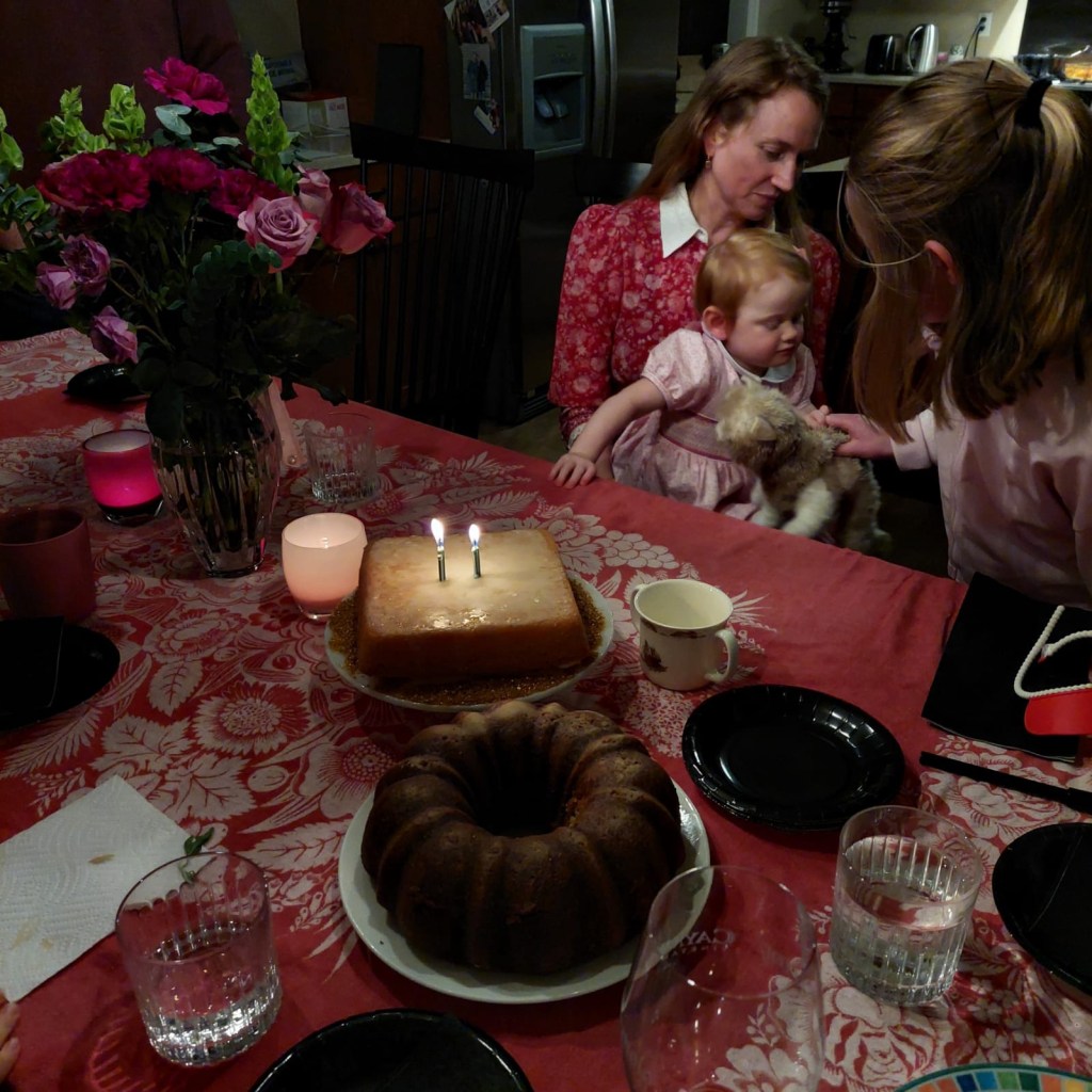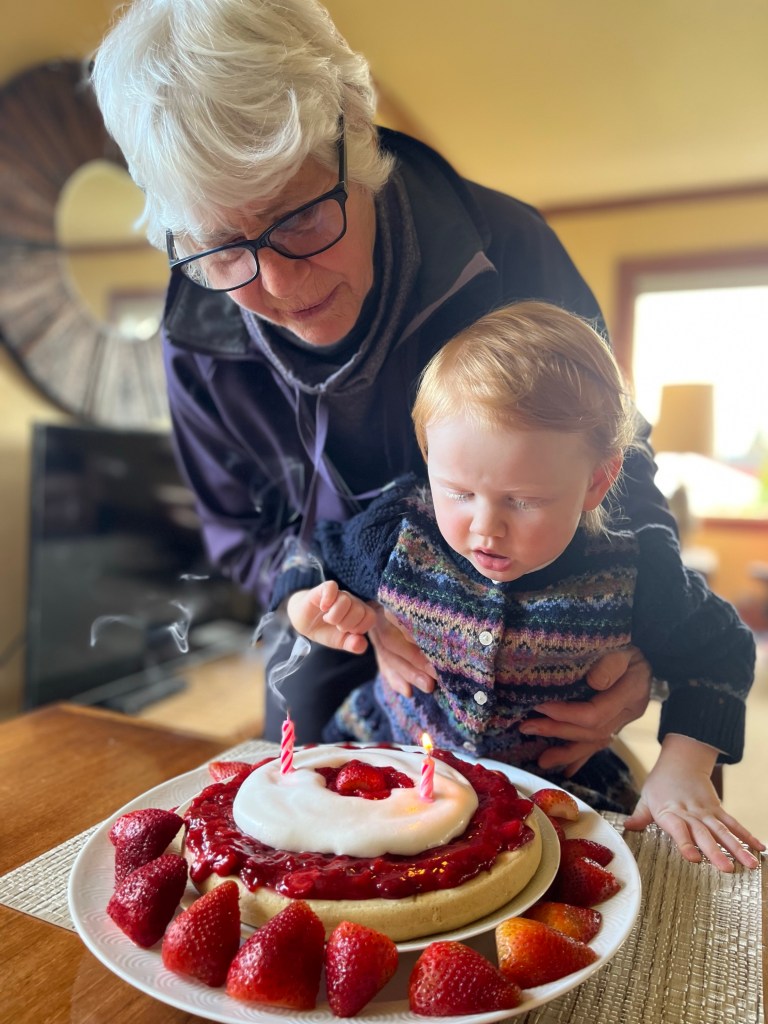 Lady Kitty just turned two and she’s still giving Mama the sweetest kisses. “Owah!” I say when she accidentally bonks me in the head. She carefully gives me kisses on the site of injury. She’s thoughtful and compassionate. Focussed and quick to learn from her big brother. She’s happy to play hard with Lake and always happiest outside. She’s a “baby engineer”, quickly becoming a baby toddler. This year we travelled out of state for her birthday, visiting friends and family. We were showered with the love of friendships that make life sweet and rich. May you always know such abundance. She was blessed with a cake wherever we went, and after three cakes and some tips from Lake, she got well practiced in blowing out her own candles.
