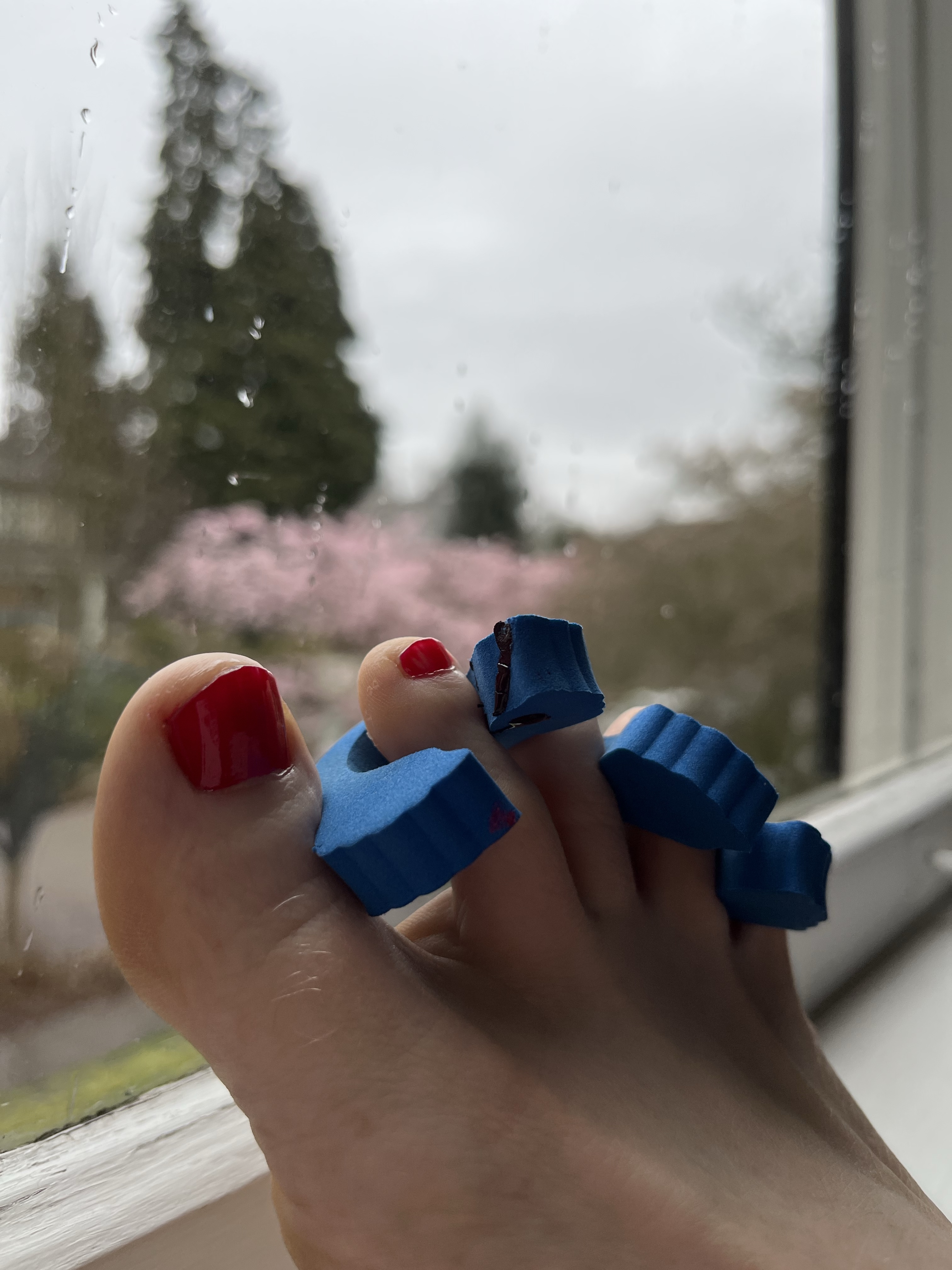 Today I’m grateful for my feet carrying me on another long run: this time 21 km with my running partner Jason, and for Michael taking the children to visit Jamma Julie on Bainbridge Island. I had a delicious day to myself to celebrate British Mother’s Day! With this lovely Spring weather I’m enjoying the glorious cherry blossoms and managing a bit of gardening, as well—the weeds pull up so easily after all this rain!