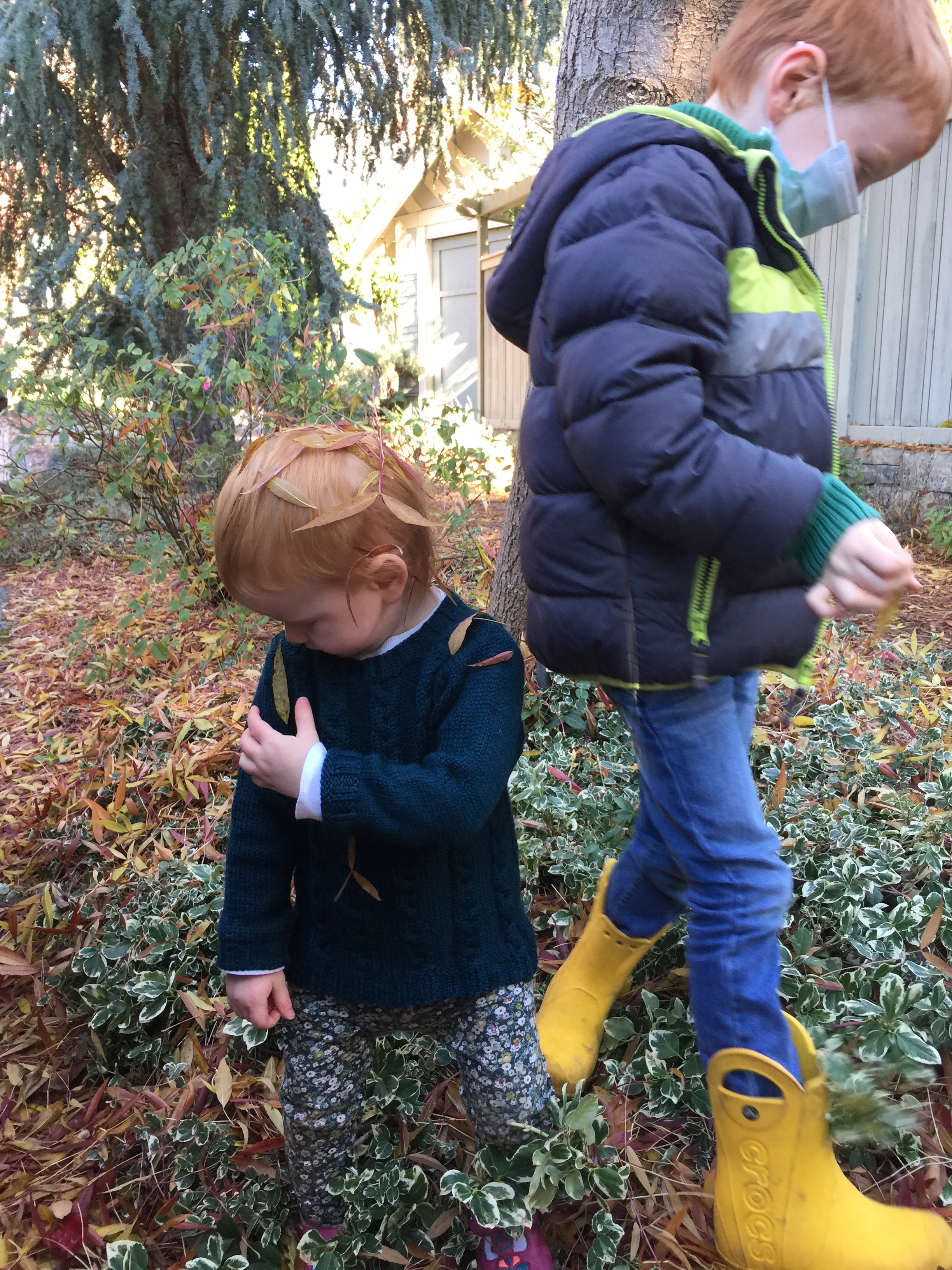 Lake coined the kiddos “nature kid, nature baby” as we walked around the neighborhood parks this weekend playing in the leaves. Such gorgeous weather and a real treat after our record-breaking rainy storm. Lady Kitty models her new bespoke hand knit sweater, a gift from Auntie Denise. She thinks it’s funny when Lake throws leaves at her face. The first few times it’s hilarious, then, like any joke, the novelty wears off and it’s just getting hit in the face. Sibling joys!
