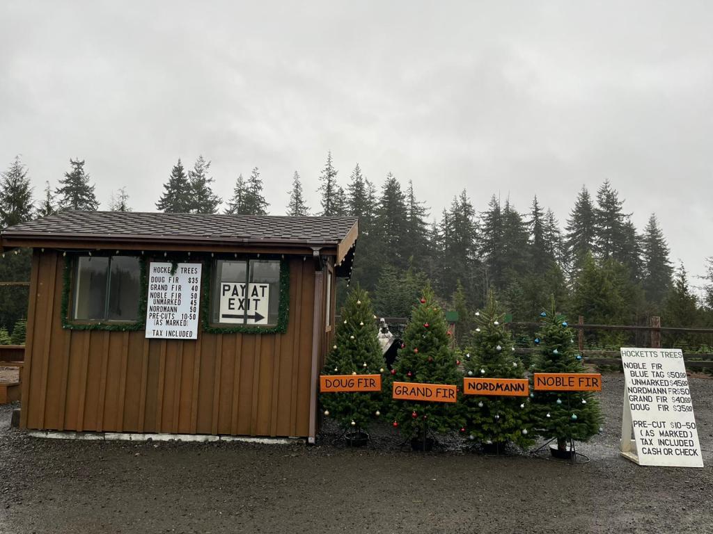 It was without a sense of urban alacrity that we gathered together our supplies for the Christmas Tree Procurement Adventure. We embraced the provincial ritual by making it the main event of our day. I packed a hamper with thermoses of hot chocolate, still steaming from the stove. Nana packed easy to peel citrus, and we accidentally left behind the English tea sandwiches she had thoughtfully prepared. We gathered up hats, mittens, shoes and an extra pair of boots, donned our wool sweaters and rain pants, and brought with us puffy coats as well as rain coats. We set out to find our destination without GPS assistance, heightening the sense of mythical journey. This local Christmas Tree farm is a bit of a seasonal pop-up, with no internet presence, and is well known by word-of-mouth only. There is no business listing, and the location does not show up on a map. Nonetheless, it is well signed from the highway and we have passed it countless times over the years, so it was a wee amusing that we were anxious about finding the place. Nana drove slowly down the highway, through the dim daylight as Lake and I peered closely at each embankment and road in fear of missing our turnoff. At last, we came upon this familiar scene, the trees having not moved since our last visit.
