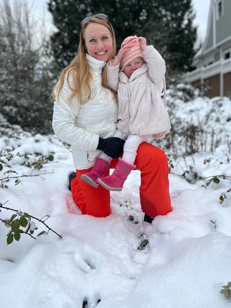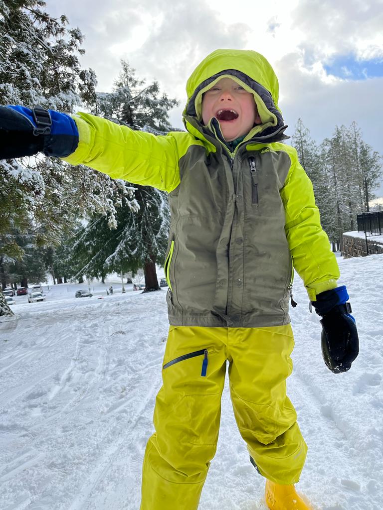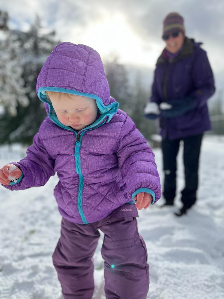 It kept snowing throughout the day. Nana revealed her long sojourn in a rainy climate by declaring, “Lake did you look out the window? It’s like pouring down snow!” Lake raved at the snow and was delighted to make snow angels and go sledding, and me: My heart was singing like a brass band!
